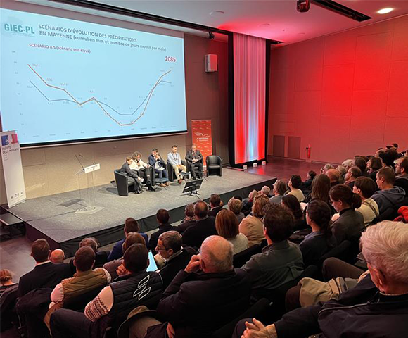 Les interventions du GIEC Régional Pays de la Loire et de l’ADEME ont posé le cadre scientifique, suivies de témoignages concrets : industriels (Lafarge, Lhoist), collectivités (Genest-Saint-Isle, Communauté de communes de l’Ernée) et agriculteurs.